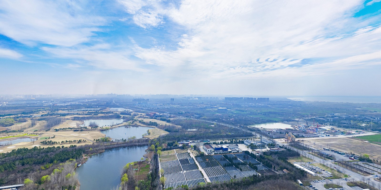 在此图中可以看到,远处有点雾蒙蒙的,是因为天气不好吧?当然不是,拍摄当天太阳很不错,但为何航拍就有雾呢,因为拍摄时间为3月,天气还没很暖和,所以经常会有雾,那为何拍视频的时候不会有这样的问题呢?原因是拍视频的时候主要在航拍的时候对着地面的不需要看到空中过远的地方,当然如果航拍视频对着远方,但在六安航拍VR全景的时候,空中720度反胃内的所有位置都能看到。